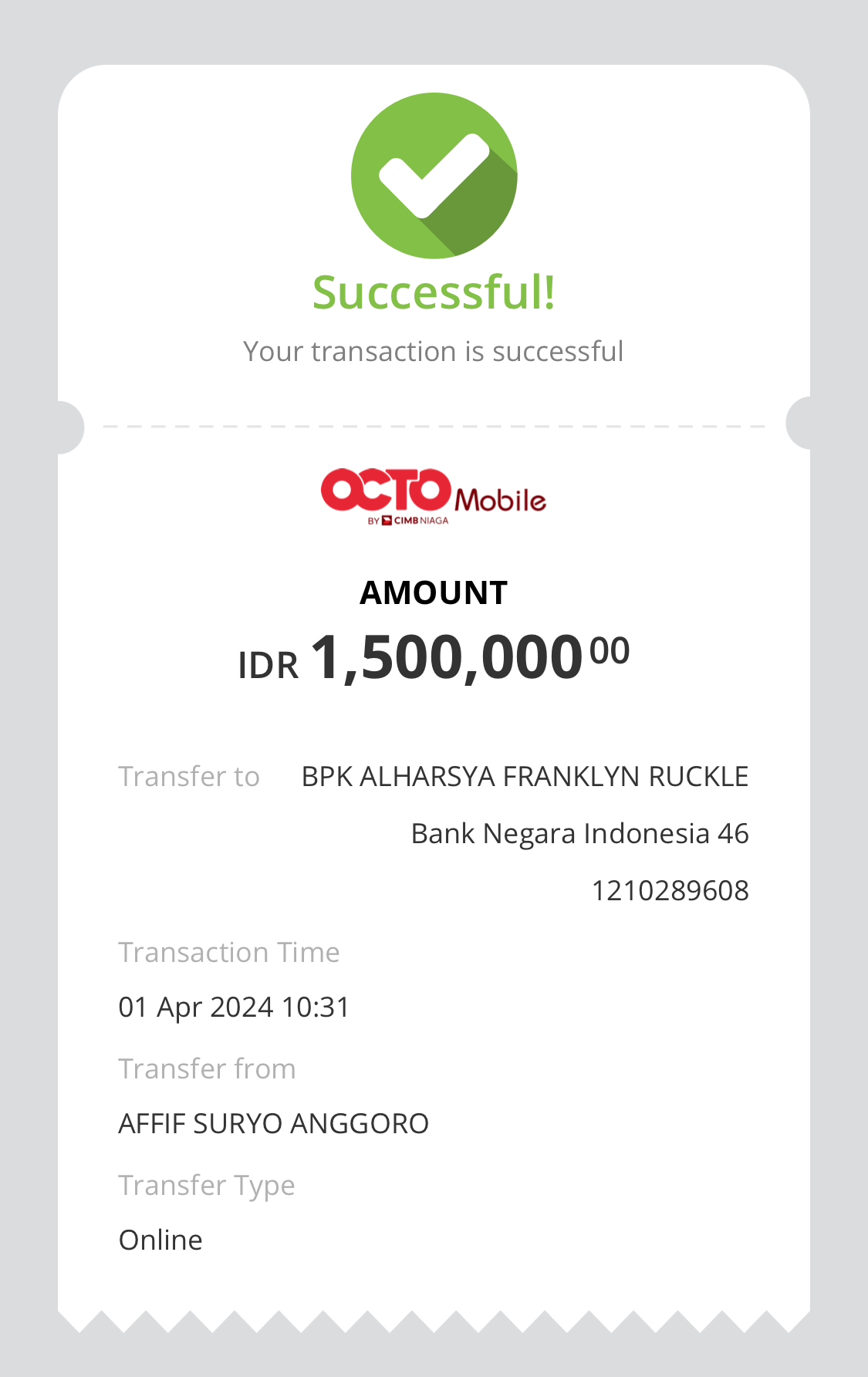 | 23 | 01-04-2024 | Rp1.500.000 | Lihat |