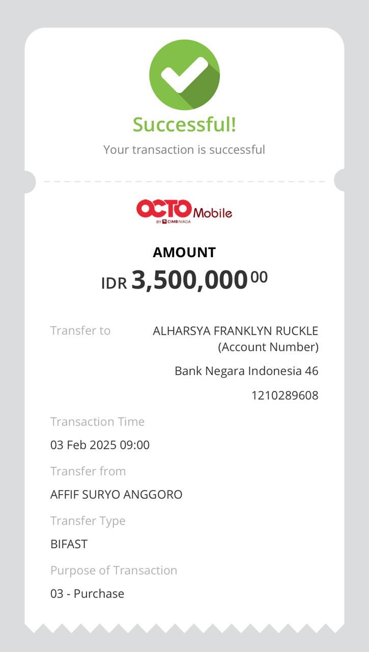 | 7 | 02-08-2025 | Rp3.500.000 | Lihat |